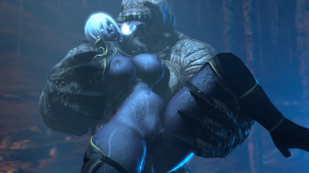 Монстр продавливает животик Нуалии своим огромным членом